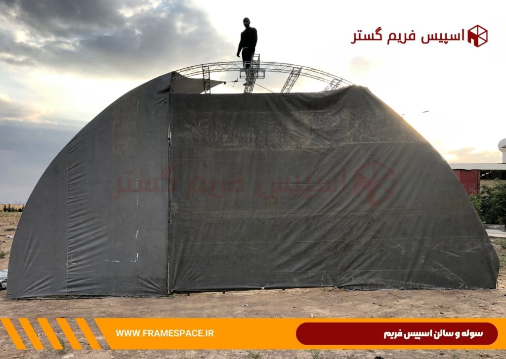 سوله‌ ساخته‌شده با اسپیس فریم، گزینه‌ای مناسب برای فضاهای سرپوشیده موقت مانند انبارها، کارگاه‌های فصلی یا نمایشگاه‌های بزرگ هستند. این سوله‌ها به دلیل ساختار مدولار و انعطاف‌پذیرشان، به‌سرعت نصب شده و قابلیت پوشش با سقف‌های مقاوم را دارند. برای افزایش طول عمر و ایمنی سوله، به‌ویژه در ابعاد بزرگ، باید از بست‌ها و اتصالات قوی و باکیفیت استفاده شود تا پایداری سازه در شرایط مختلف حفظ شود.